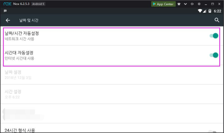 3. 녹스앱플레이어 시간과 PC 시간이 동일한지 확인